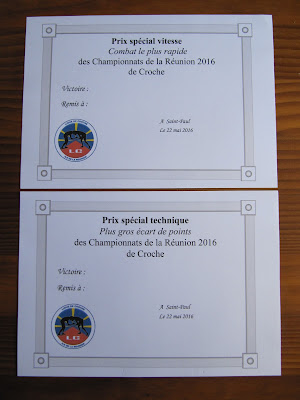 le 23/05/2016 @ 18:51 Merci à tous les participants : les habitués (qui maîtrisent bien le règlement de la croche) et les nouveaux arrivants (qui enrichissent la croche avec leur bagage technique spécialisé) ! Tout le monde va progresser grâce aux échanges, en stage, ou en compétition. Prochain rendez-vous en juillet, à Bois de Nèfles Saint-Paul. On va préciser avec les cadres le contenu de ce prochain rendez-vous. Mais je pense d'ores et déjà que cela pourrait être une préparation en vue des championnats de l'océan Indien, collectivement, pour que les nouveaux arrivants en croche soient aussi plus informés sur le règlement, et pour que les sélectionnés (7 champions de la Réunion) soient au top pour représenter la Réunion.