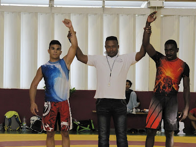 le 23/05/2016 @ 18:54 Je m'occupe de rédiger le compte-rendu des 8èmes championnats de la Réunion de croche (2016) aujourd'hui. Avant de poster le texte et de l'envoyer à la presse, je le soumettrai simplement au président Lino Charlettine. Je peux néanmoins annoncer le nom des vainqueurs d'hier par catégorie de poids : - Loïc Bijoux (Grapplers Sud), champion en titre des 92kg et vainqueur des JIOI 2015 parmi les 92kg, s'impose cette fois-ci chez les 100kg - Christopher Armouet (La croche Bois de Nèfles + CLTS) chez les 92kg - Nicolas "Tico" Grondin (Cercle Sudiste) chez les 84kg - Anthony Lebreton (AWCKJKDMV), vice-champion des JIOI 2015, grimpe sur la première marche du podium chez les 77kg - Wilfrid Sellaye (CLTS + La croche Bois de Nèfles) obtient son 5ème titre régional de croche (c'est le record absolu) chez les 71kg sans oublier sa médaille d'or aux JIOI 2015 - Lewis Bordier (Perform-Es) vice-champion des JIOI 2015, grimpe sur la première marche du podium chez les 65kg et établit un nouveau record technique de l'océan Indien en remportant un combat par supériorité technique (10 points d'écart) en seulement 2'10'' (le précédent record appartenait au Mauricien Pascal Laurent vainqueur 12 à 2 en 5 minutes exactement) - Sébastien Turpin (Grapplers Sud) vainqueur des JIOI 2015 (à 16 ans à peine !) s'empare du titre de champion de la Réunion 2016 (à 17 ans, nouveau record, le précédent appartenait à Bruno Courteaud champion à 18 ans, c'était en 2009); puis, en étant surclassé à l'âge (moins de 18 ans/senior) et au poids (59kg/65kg), avec l'autorisation de son entraîneur Rémi Chane-To, Sébastien Turpin a affronté Lewis Bordier, le champion de la catégorie supérieure, pour signer une égalité aux points 2 à 2. Quel énorme potentiel pour ce jeune combattant !